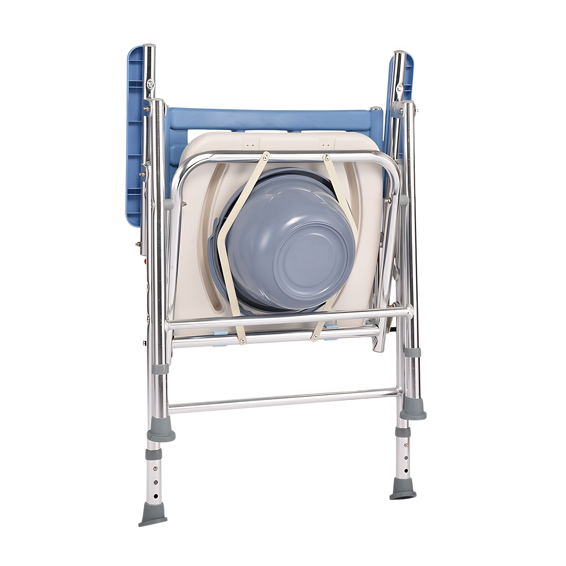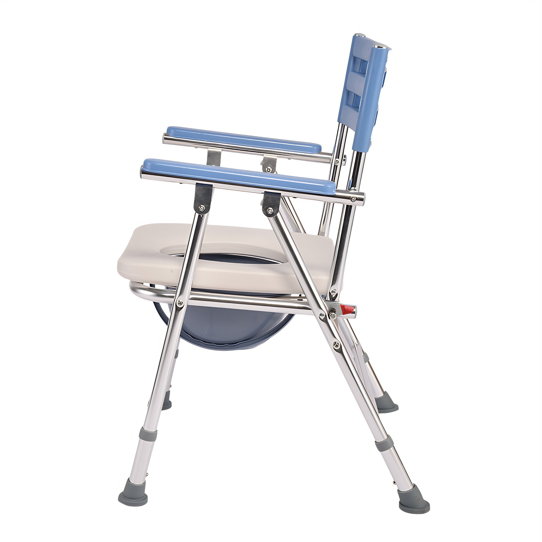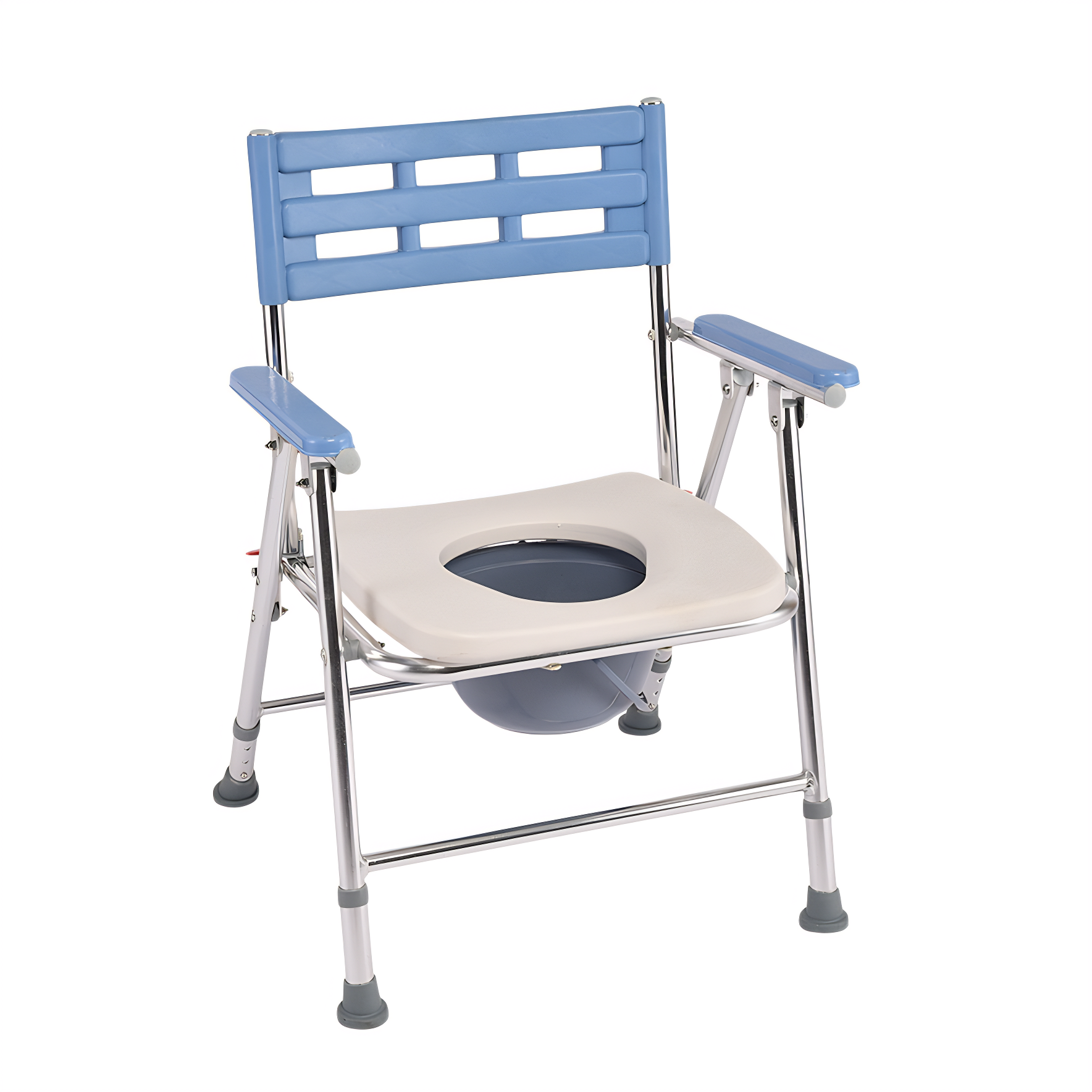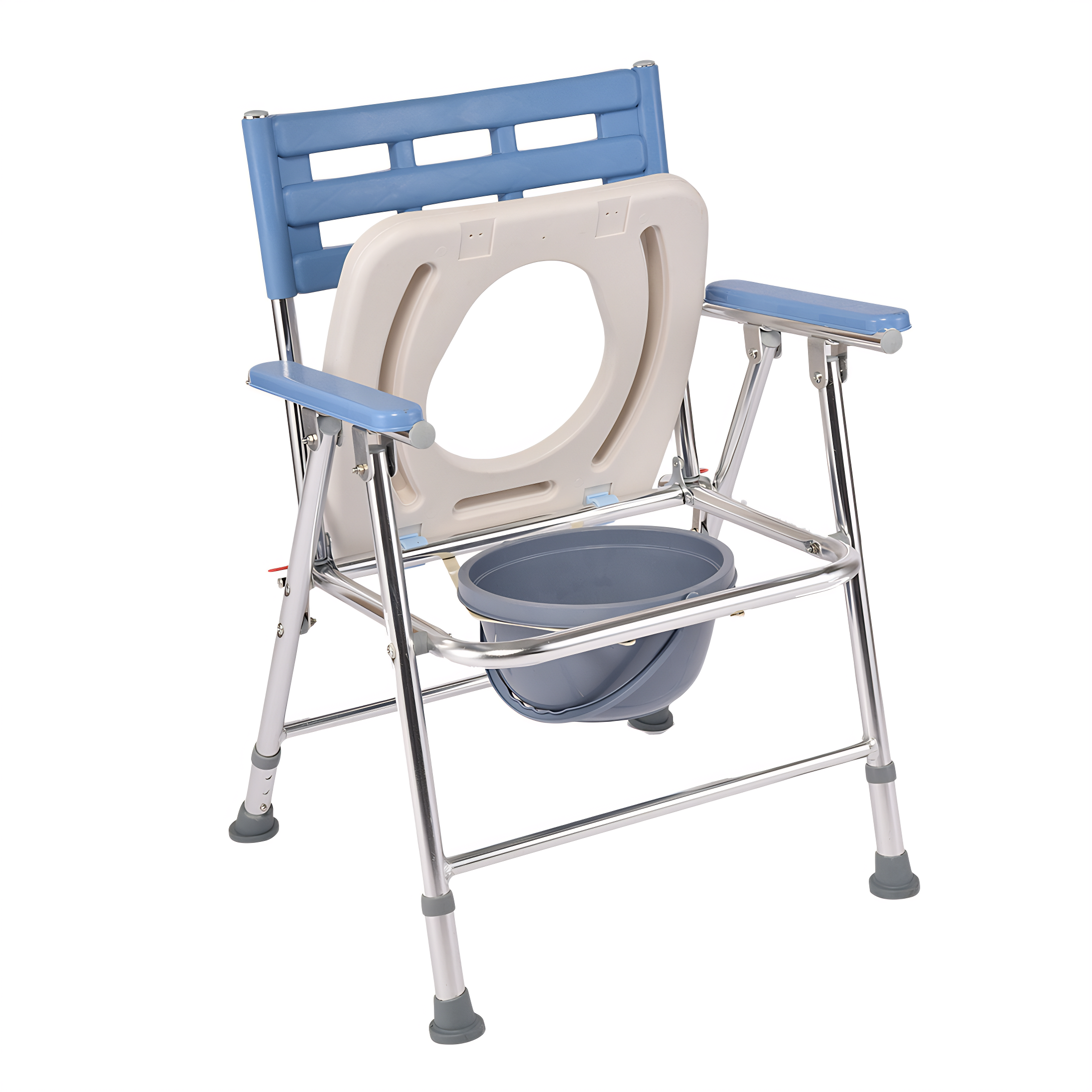 The primary advantage of a folding shower chair over a standard shower chair is its ability to significantly save bathroom space while ensuring safety and stability, all while offering portability and height flexibility. This folding shower chair from WanRong Medical folds easily by lifting the seat and securing the side clips. Both the backrest and seat cushion fold flat, maximizing space savings in the bathroom and making it convenient for transport during travel. Constructed from thickened aluminum alloy, the seat offers sturdy yet lightweight support with natural rust resistance. Its three-level height adjustment accommodates users of varying heights. Additionally, this folding shower chair includes a built-in commode, serving dual purposes as both a shower chair and a commode chair.