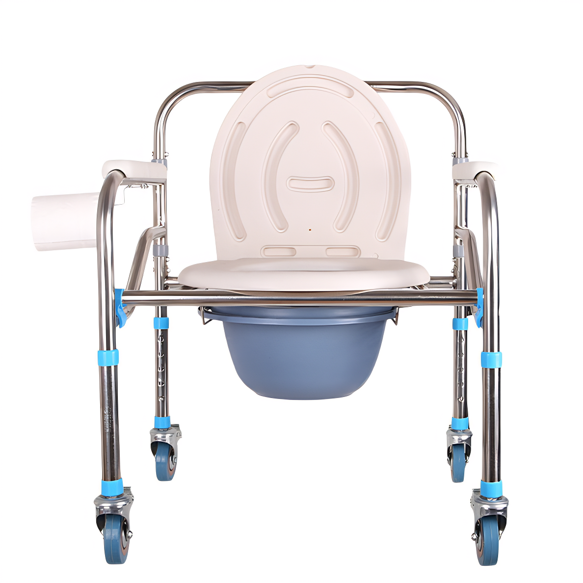 The shower chair with wheels is a type of shower chair. Compared to standard shower chairs, WanRong Medical's model features swivel casters that rotate 360 degrees. This allows users or caregivers to effortlessly move the chair throughout the bathroom-such as from the doorway to the shower area or beside the toilet—facilitating easy access and use. Additionally, this model incorporates a wheel locking mechanism, ensuring safety while maintaining mobility. Unlike standard shower chairs, it includes a commode attachment. This dual-function design allows it to serve as both a shower chair and a commode chair when the commode is attached. Its wheeled base enables effortless relocation to suit various usage scenarios and needs. Finally, this shower chair with wheels folds compactly, saving significant space when stored.