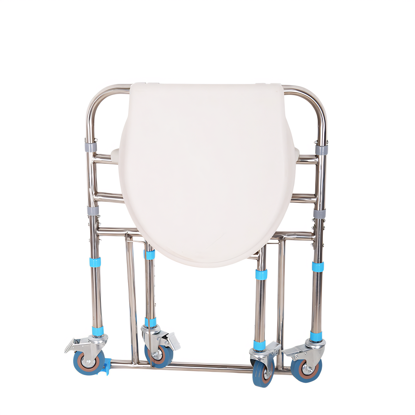 The shower chair with wheels is a type of shower chair. Compared to standard shower chairs, WanRong Medical’s model features swivel casters that rotate 360 degrees. This allows users or caregivers to effortlessly move the chair throughout the bathroom-such as from the doorway to the shower area or beside the toilet—facilitating easy access and use. Additionally, this model incorporates a wheel locking mechanism, ensuring safety while maintaining mobility. Unlike standard shower chairs, it includes a commode attachment. This dual-function design allows it to serve as both a shower chair and a commode chair when the commode is attached. Its wheeled base enables effortless relocation to suit various usage scenarios and needs. Finally, this shower chair with wheels folds compactly, saving significant space when stored.