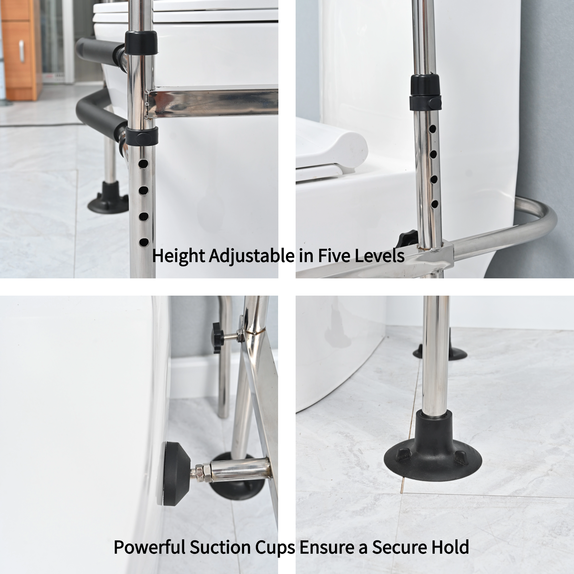 - Adjustable Height, Width, and Depth: This adjustable toilet safety frame offers five height settings (61cm-71cm) with up/down movement to accommodate varying user heights. Width can be customized via a knob, while depth is adjustable forward/backward using screws.